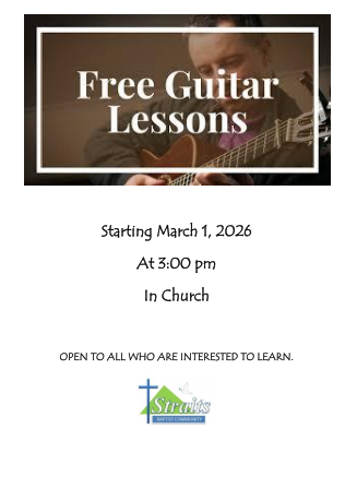 On behalf of Straits Baptist Community, I would like to take this opportunity to welcome you to our webpage. Straits Baptist Community is a Christ-Centered, Caring Community Church that strives to be obedient to the Great Commandment (Matthew 22:37-39) and the Great Commission (Matthew 28:19-20).